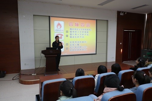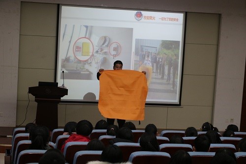 讲座最后,姚国惠通过讲述“一个防火面罩让婴儿在父母怀中安然逃脱”的感人事例感言到,幸福便是健康,是安全,是拥有一个完整的家。身在学校,学校就是家。最后,他希望同学们熟练掌握灭火、逃生、自救的方法,将消防理论知识与实际操作有机的结合起来。