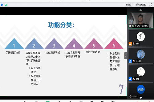 此次答辩会主要分为远程ppt展示和答辩两部分。答辩会伊始,创新创业团队对所拥有项目的PPT进行5分钟展示,向各位评委详细地介绍了各自项目的核心技术、实行方案、投资成本和盈利空间等具体方案。剩余3分钟答辩时间由评委对主辩手提出问题,评析项目,发表针对性意见,客观评估对方项目优劣势并提出改进建议。