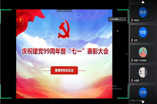 6月28日上午,管理学院以腾讯会议为媒介,组织召开庆祝建党99周年暨“七一”表彰大会。此次会议由学院党总支副书记高静静主持,全体师生党员参会。