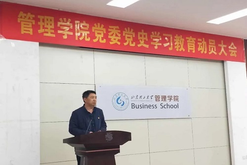 4月16日下午,管理学院在4号教学楼二楼报告厅召开党委党史学习教育动员大会,此次会议由学院党总支书记陈俊德主讲,学院全体教职工及学生党员参加。