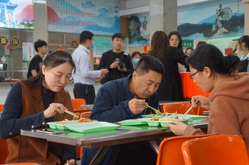 活动伊始,张鑫对各位学生代表的到来表示热烈欢迎。他指出,劳动者是至高无上的,幸福也是由劳动者创造的,希望同学们通过此次活动体验餐厅劳动的辛苦,加强与餐厅工作人员的交流互动。接着,他向全体同学强调安全的重要性。随后,活动正式开始,餐厅工作人员带领学生代表有序进入厨房进行体验。