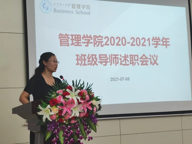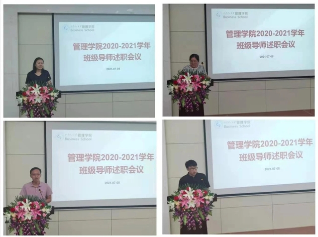 7月8日上午,管理学院于4号教学楼报告厅举行班级导师述职评议会。党委书记陈俊德,院长孙秀梅,党委副书记高静静及教师代表参加此次评议,各班级导师进行现场述职。