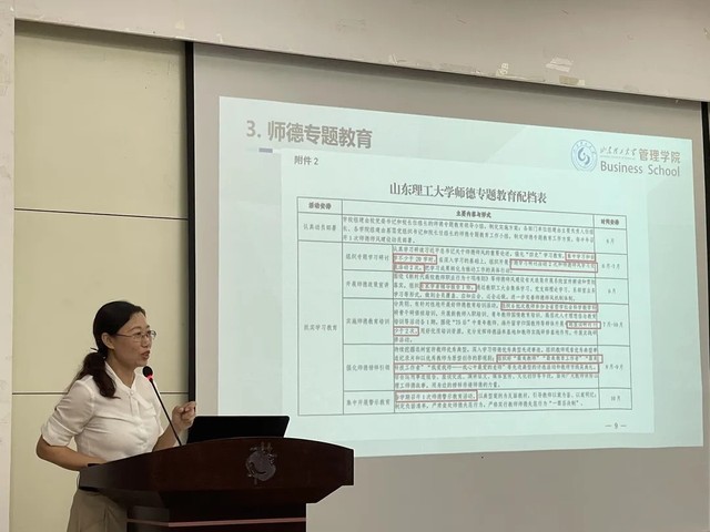 中期一是开展师德政策宣讲和教育培训,组织学院全体教师集体学习《新时代高校教师职业行为十项准则》、《山东理工大学教师行为七项规定》、《山东理工大学教师课堂教学规范》等文件,依托中国教师博物馆、齐文化博物院等师德涵养基地,淄博中国陶瓷馆、蒲松龄纪念馆等教师实践研修基地,以及胶东(威海)党性教育基地、焦裕禄纪念馆等平台进行实践调研,让师德规范的要求深入每位教师心中,转化为自觉行动。