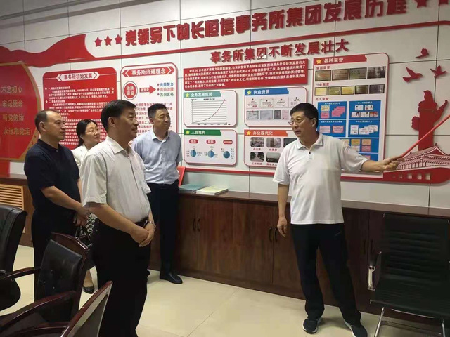 首先,在山东长恒信事务所集团董事长李志文讲解下,魏修亭副校长等一行详细了解了事务所集团的党建和治理情况。