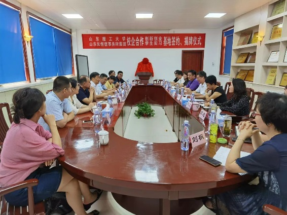 协议签订后,魏修亭副校长、孙秀梅院长与李志文董事长、卓琳副总共同为山东理工大学“创新创业实践基地”揭牌。