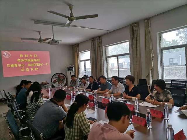 7月18日上午,菏泽学院商学院党委书记吕建春,党委副书记、院长田建军等一行9人来我院访问交流。管理学院领导班子成员、各专业负责人在管理学院二楼会议室与客人进行了座谈。