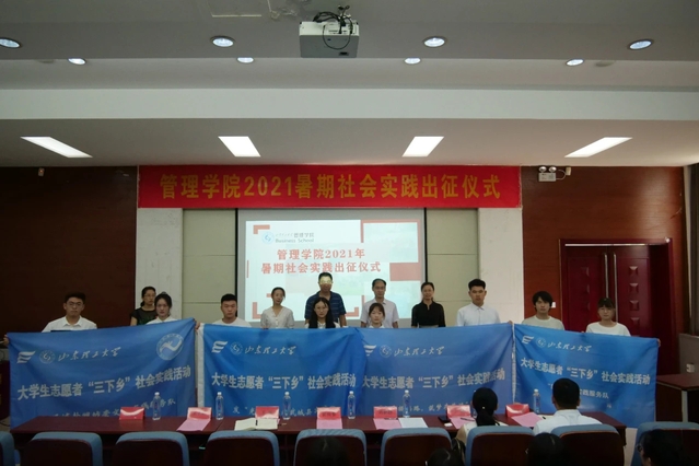 7月13日上午,管理学院于东校区4号教学楼二楼报告厅举行2021年度暑期社会实践出征仪式。此次仪式由学院团总支书记巩丽主持,校团委书记王振、书记助理邱先慧,学院党委书记陈俊德、副书记高静静,马克思主义学院思政课实践教学指导老师王子如、郭军华、王丽,学院辅导员代表、2021年社会实践团队学生代表参加。