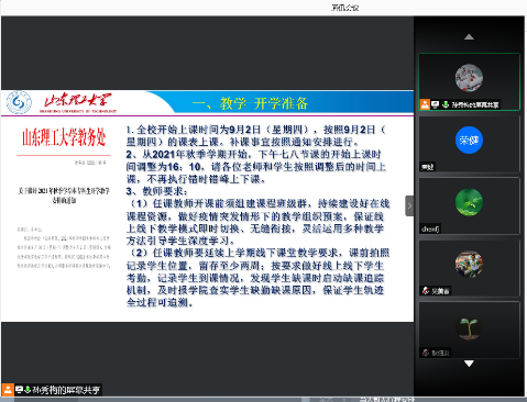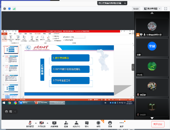 然后,教学院长助理白福萍从教学常规事项、上半年教学任务完成情况、下半年主要工作等方面进行了教学工作汇报,她高度强调了学期初的教学准备相关事项,提醒大家新学期一定要严格遵守学校学院的教学要求与规定。科研院长助理蒋兵也汇报了上半年学院科研项目申报、研究生教育等方面的工作进展情况,提醒老师们一定注意各类项目申报的要求与时间节点,鼓励大家新学期里多报项目、多出成果、出好成果。