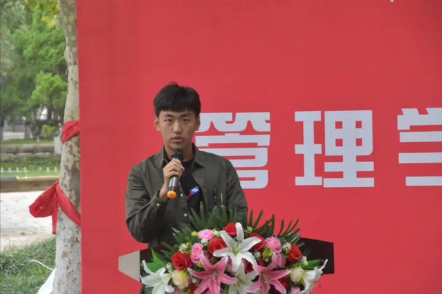 接着,新生代表王浩上台发言。他表达了对大学生活的向往,并从完善自我、成就自我、充实自我、丰富自我四方面展开论述。他代表新生提出,新时代大学生要心怀信仰、志存高远、加踏实地、努力奋斗,肩负起时代赋予的使命与担当。