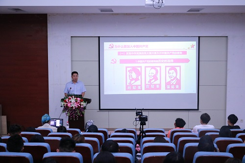 此次启蒙教育分为“中国共产党是一个什么样的政党”“我们为什么要加入中国共产党”“我们怎样才能加入中国共产党”三部分。围绕“中国共产党是一个什么样的政党”,陈俊德讲到,十九大通过的党章中明确指出党的宗旨是全心全意为人民服务。他号召新生在中国共产党领导下,坚定不移地走中国特色社会主义道路,全面建设小康社会,加快推进社会主义现代化,实现中华民族的伟大复兴。围绕“我们为什么要加入中国共产党”,陈俊德详细介绍党诞生以来的英雄事迹和理想信念,他指出,广大青年的命运与党的命运是紧密相连的,党的伟大事业离不开青年。同时引用习近平在党的十九大报告中的殷殷期望,着重强调青年与国家的关系,赋予广大青年实现中华民族伟大复兴中国梦的历史使命和时代担当。
