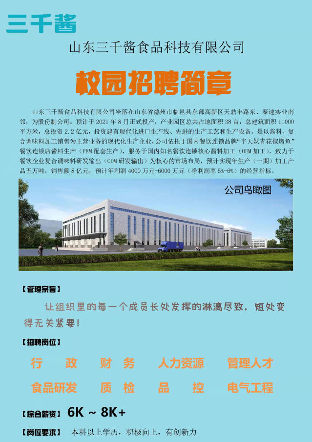 山东三千酱食品科技有限公司校园招聘简章