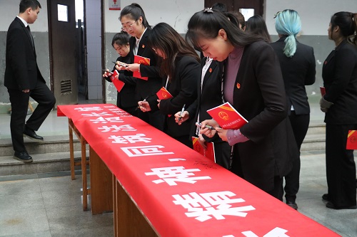 最后,学院党建事务工作负责人张勇带领全体学生骨干郑重宣誓:忠于中华人民共和国宪法,维护宪法权威,履行法定职责,忠于祖国、忠于人民,恪尽职守、廉洁奉公,接受人民监督,为建设富强民主文明和谐美丽的社会主义现代化强国努力奋斗!宣誓完毕后,学生骨干有序在条幅上签名并合影留念,以此做出自己的承诺,在今后积极践行“有法可依,有法必依,执法必严,违法必究”的理念,始终铭记宪法精神。