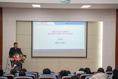 接着,胡付领对2022年春季开学教学工作作出日常教学工作、部分量化指标、工作思路与措施三方面的具体说明,要求紧盯目标、聚焦专业、精准培育、挂牌督战、作风铁硬、协同推进、不断提高、共建一流。;李忠华回顾研究生教育工作并提议教职工科教结合;白福萍从科研、学科建设、注意事项三方面对学院新学期科研与学科工作安排进行解读,重点强调要保证科研诚信。