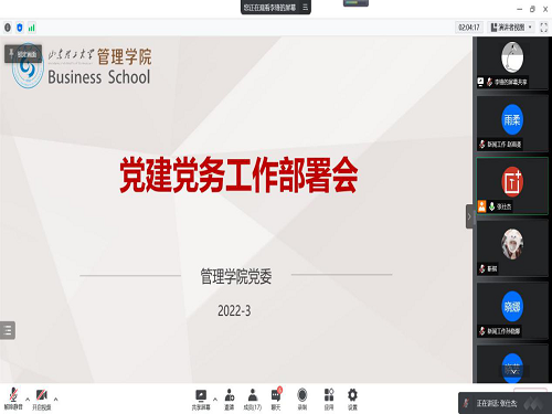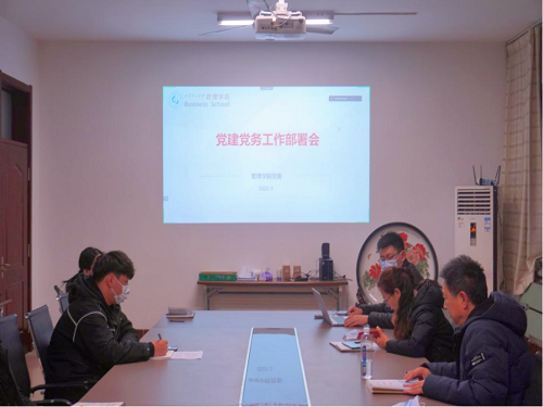 3月18日,管理学院党委召开党建党务工作部署会,此次会议采用线上线下相结合的方式,由学院党委书记陈俊德主持,学院党委领导班子、各党支部书记参加。