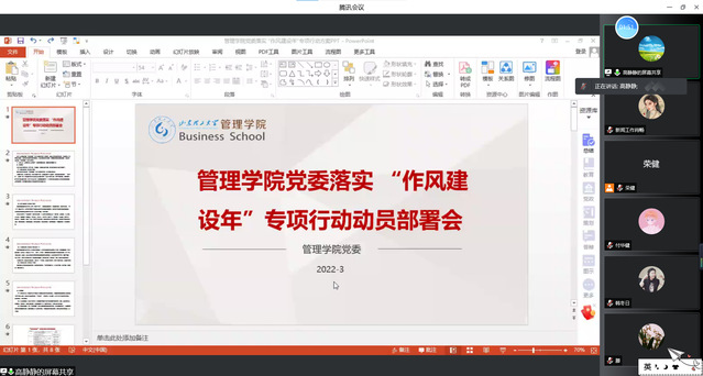 3月31日晚,管理学院通过线上会议的方式举办党委落实“作风建设年”专项行动动员部署会。此次会议由管理学院党委书记陈俊德主持,党委副书记高静静主讲,全体师生党员参加。