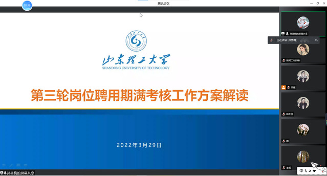 3月31日晚,管理学院通过线上会议召开第三轮岗位聘用期满考核工作方案解读会。此次会议由院长孙秀梅主持,全体教职工参与。