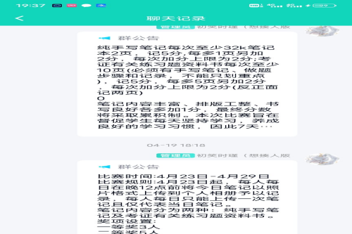 4月23日活动正式开始,参赛人员提前在群里建立群相册。参赛人员每天在自己的群相册上传自己的笔记,随后,七天笔记上传完成者将笔记上传截图发送至官方人员以获取到梦空间签到码进行签到。最终评委将每人的成绩进行评分,作出比赛成绩的排名。比赛结束,熊心美学姐向同学们的积极参与和认真准备表示感谢,并对获奖同学表示祝贺。
