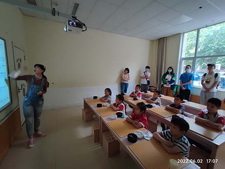 在听取完张靓老师的讲解,我们对围棋已经有深一步的认识,随后张靓带领大家参观淄博市围棋协会。2021年8月9日,中国围棋协会正式公布,授予淄博市“全国围棋之乡”称号,有越来越多的人学习围棋,其中不乏小朋友们。在本次参观交流中正好有一班小朋友在学习,我们很荣幸可以进到班里参观。在教学中老师老师采取理论教学与实践相结合的教学方式,提出问题让小朋友们现场讲解。
