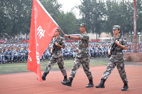 总结发言完毕后,教官代表送上军训团团旗。最后,全体起立,奏唱校歌,至此大会圆满结束。