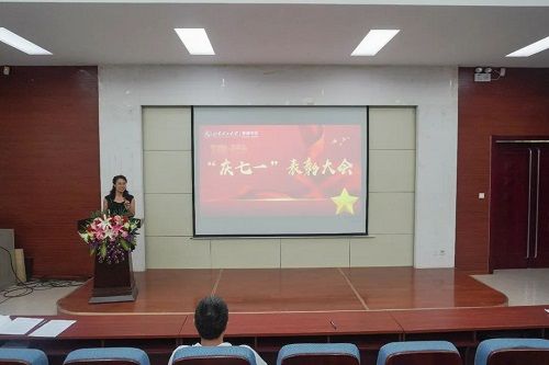 7月1日下午,管理学院在4号教学楼二楼报告厅召开“庆七一”表彰大会,此次会议由管理学院党委副书记高静静主持,学院全体师生党员参加。