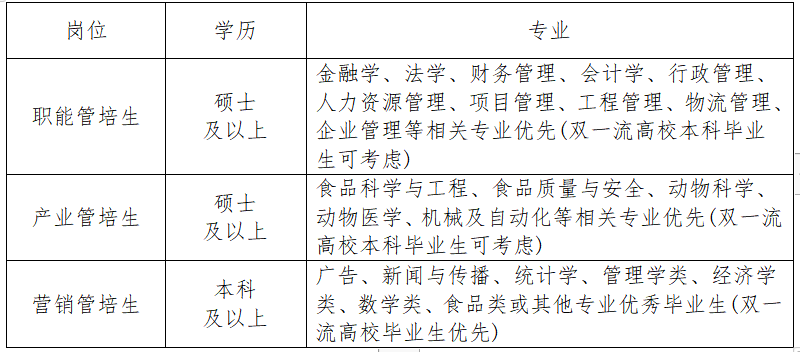 背景:品学兼优,热爱学习,有上进心及责任心,肯扎根农牧食品行业;