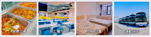 | 3、免费三餐、高档员工公寓、免费通勤班车、全功能健身设施; |