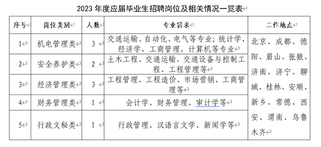招聘岗位:机电管理类、安全养护类、经济管理类、财务管理类、行政文秘类。
