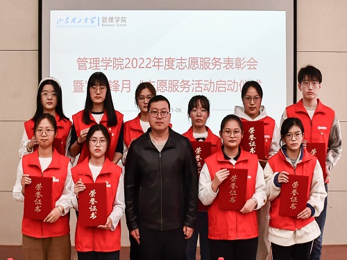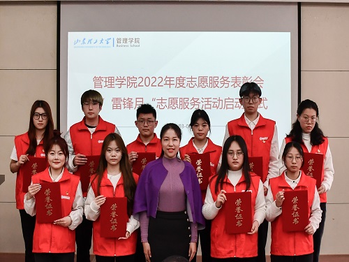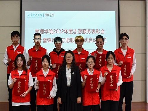 3月6日下午,管理学院在4号教学楼二楼报告厅召开2022年度志愿服务表彰会暨“雷锋月”志愿服务活动启动仪式。此次会议由管理学院团委书记李璐主持,校团委书记王振,院党委副书记高静静,校团委实践部干部邱先慧,辅导员孙婷,受表彰的志愿者及“Yi”行志愿服务临时团支部代表参加。