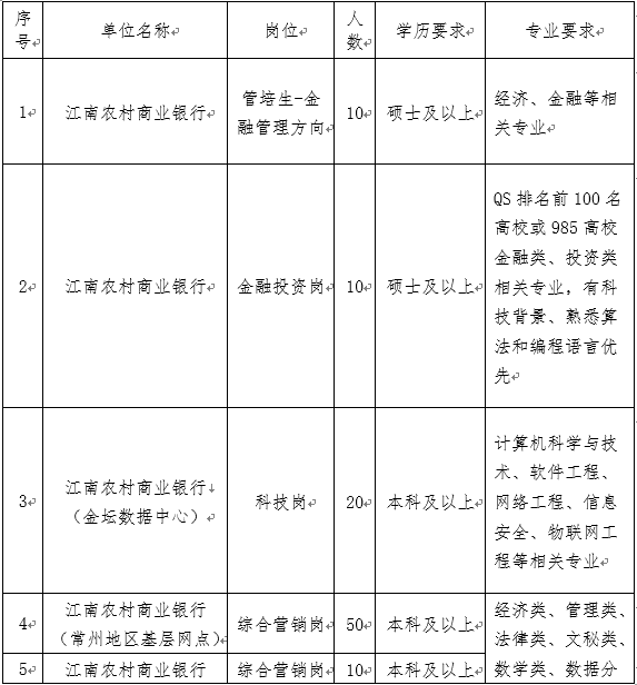 江南农村商业银行2023年度春季校园招聘简章