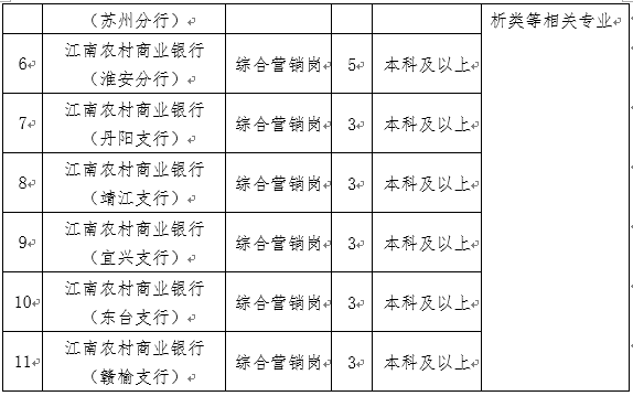 4.了解更多招聘讯息及相关动态,敬请关注“江南农商银行”微信公众号。