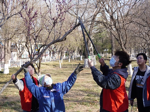在第45个植树节到来之际,学院积极发动同学,对树木进行修剪,清理树木旁的枯枝,杂草、垃圾,并对病虫枝、干枯枝及偏冠和过密的树枝进行修剪,并进行合影留念。在保障树木健康生长的同时,使树木更具有良好的观赏价值。通过这次植树节志愿服务活动,同学们在锻炼自己实操能力的同时,更加深刻地认识到了环保的重要性,也更加坚定了自己爱护环境、保护生态的决心。