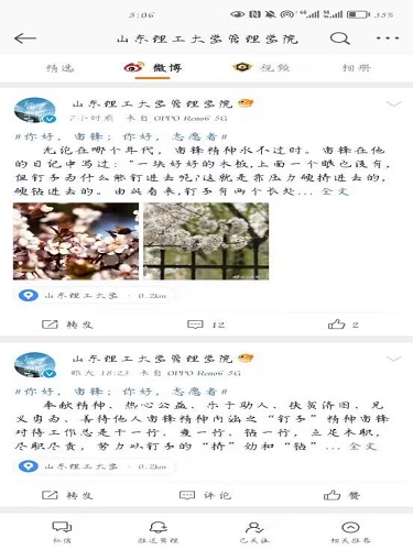山东理工大学校青年志愿者协会在新浪微博开通#你好,雷锋;你好,志愿者#话题,学生会成员进行转发评论。同时,管理学院微博官方账号参与话题讨论,每日发布投票微博,加入抽奖项目,保证互动率,掀起管院学雷锋,讲奉献的热潮。通过这种方式引导学生多方面参与活动,调动管院学子学习雷锋精神的积极性。让学子们在今后学习生活中将雷锋精神内化于心,外化于形。