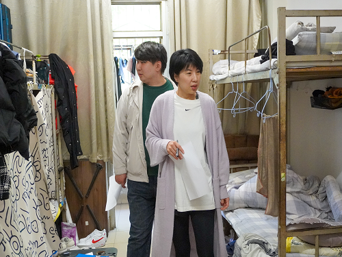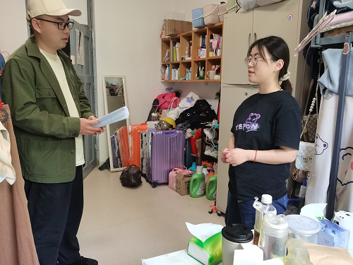 走访过程中,各辅导员与学生进行了亲切交流,询问学生近期学习生活情况,叮嘱学生要勤奋好学,同时了解学生们在学习生活中遇到的困难并给予帮助。最后,他们对优秀宿舍提出表扬,鼓励学生继续保持安全文明和谐的宿舍氛围,共同打造健康、舒适的学习和生活环境。