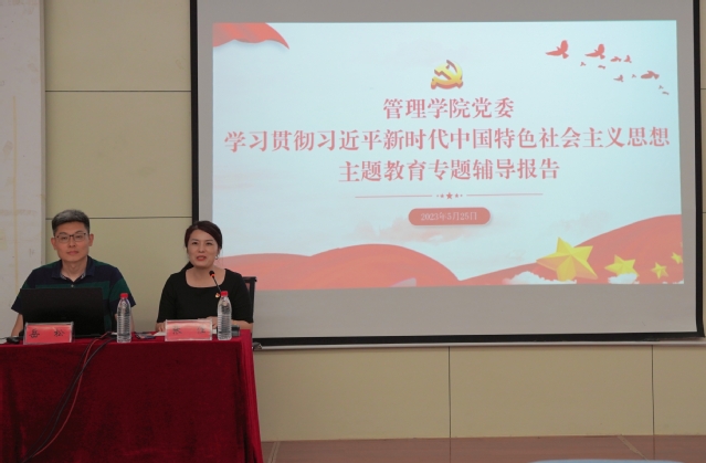 为深入学习贯彻习近平新时代中国特色社会主义思想,全面贯彻党的二十大精神,扎实开展主题教育相关工作,5月25日下午,管理学院党委举办学习贯彻习近平新时代中国特色社会主义思想主题教育专题宣讲报告会,邀请马克思主义学院副教授、团中央青年讲师团成员岳松老师作专题报告。报告会由学院党委副书记张佳主持,各支部党员、“青马班”学员代表参加。