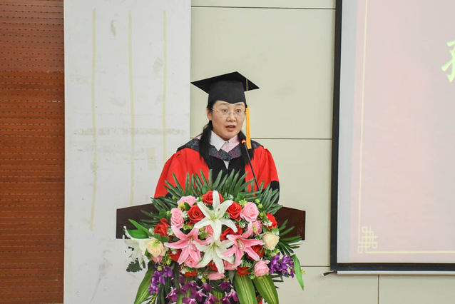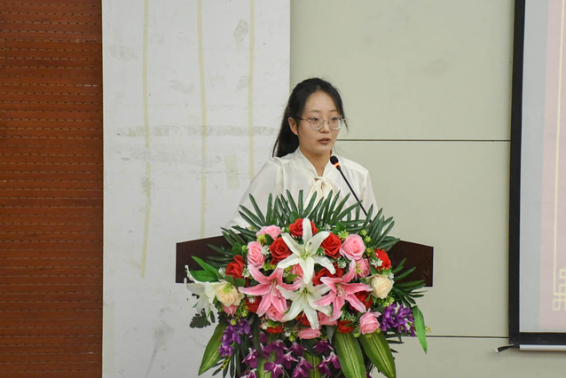 毕业生导师代表张丽媛结合自身求学和工作经历,深切嘱咐毕业生们持之以恒,坚忍不拔,终身学习,天道酬勤,不论未来继续求学还是求职就业,都要时刻铭记校训,坚持不懈努力奋斗,走出闪闪发光的人生,为自己的人生添彩、为母校添彩。