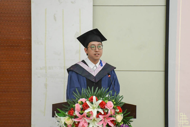 优秀毕业生代表张昊天用真挚的语言表达了对老师的感谢、对同学的情谊、对母校的不舍。他表示,青年逢盛世,奋斗正当时,将始终秉承“山理工人”踏实勤奋的作风,奔赴新的人生征程,怀揣梦想,扬帆起航。
