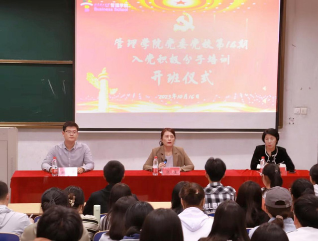 10月16日晚,我院党委党校于3号教学楼210教室举办第14期入党积极分子培训开班仪式,学院党委副书记张佳、团委书记李璐出席,辅导员国瑞坤主持,管理学院第14期全体入党积极分子参加。