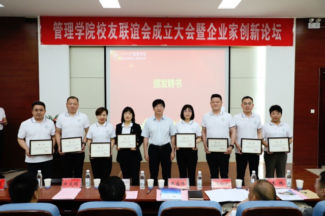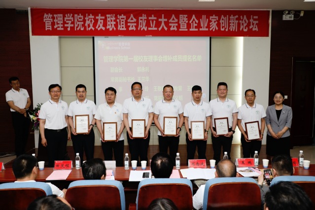 随后,举行了管理学院校友企业家联谊会成立大会。合作发展处相关负责人宣读了批准成立管理学院校友企业家联谊会的批复。陈盛伟为校友企业家联谊会第一届理事会成员颁发聘书。