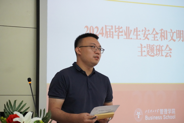 此次班会主要围绕毕业生安全教育展开。班会上,毕业班辅导员为毕业生详细讲解离校前学校、学院的各项工作安排,并就公寓消防安全、求职就业安全、出行交通安全、防电信网络诈骗等安全领域和重点问题进行细致解释和说明,教育引导毕业生遵守校规校纪,杜绝酗酒、寻衅滋事等不文明和违法违纪行为。