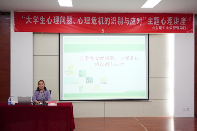 为进一步推动心理健康教育工作,提升学生干部识别、应对心理问题能力,营造良好心理健康教育氛围,我院于10月17日下午在4号教学楼报告厅举办了主题为“大学生心理问题、心理危机的识别与应对”的心理讲座,邀请到山东理工大学心理健康教育与咨询中心王素霞老师作为主讲嘉宾。讲座由心理辅导员曹立茹主持,青马学堂培训班骨干成员、各班班长、团支书和心理委员积极参与此次讲座。