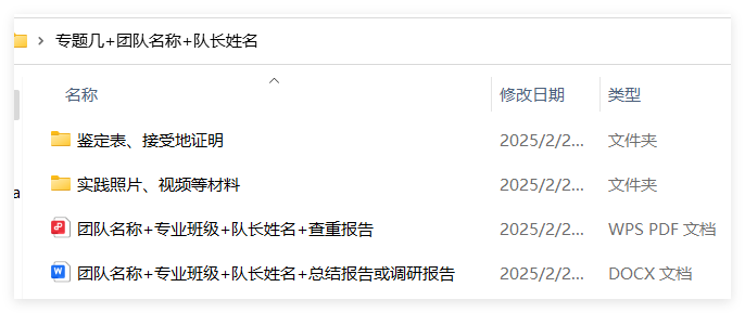 提交给班长的文件夹命名“专题×+团队名称+队长姓名”