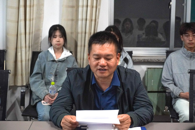 紧接着,辅导员们依次发表讲话。索罗丹从成长赋能角度指出,招生宣传不仅是服务学校的实践平台,更是同学们锻炼公众表达等综合能力的宝贵契机;任前树结合实际案例,指导学生如何与高中师生建立有效互动;高琦则着重强调细节把控,保障宣传工作的针对性与实效性。