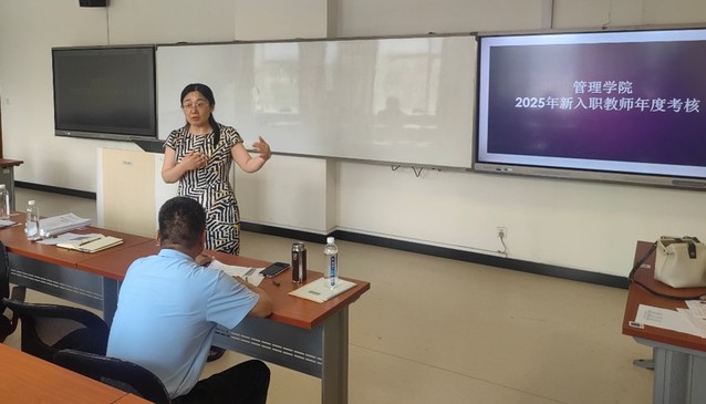 2025年7月2日,管理学院对新入职教师及导师指导情况进行了考核,学院根据《管理学院新入职教师考核办法》,组织考核小组,对六位新入职教师常原华、樊倩倩、王肖利、纪正森、乔运成、张凤霞进行了年度考核评价。各系部分教师观摩了考核。