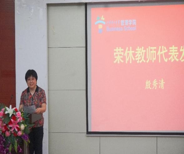 其后,荣休教师代表殷秀清和新入职教师代表初颖分别上台发言。殷秀清讲述自己教书育人经历及生涯感悟,梳理过往点滴,表达对学院的眷恋与祝福。初颖分享对教师职业的理解与个人发展规划,表示将虚心向优秀教师请教,不断提升自己,为学院蓬勃发展贡献力量。