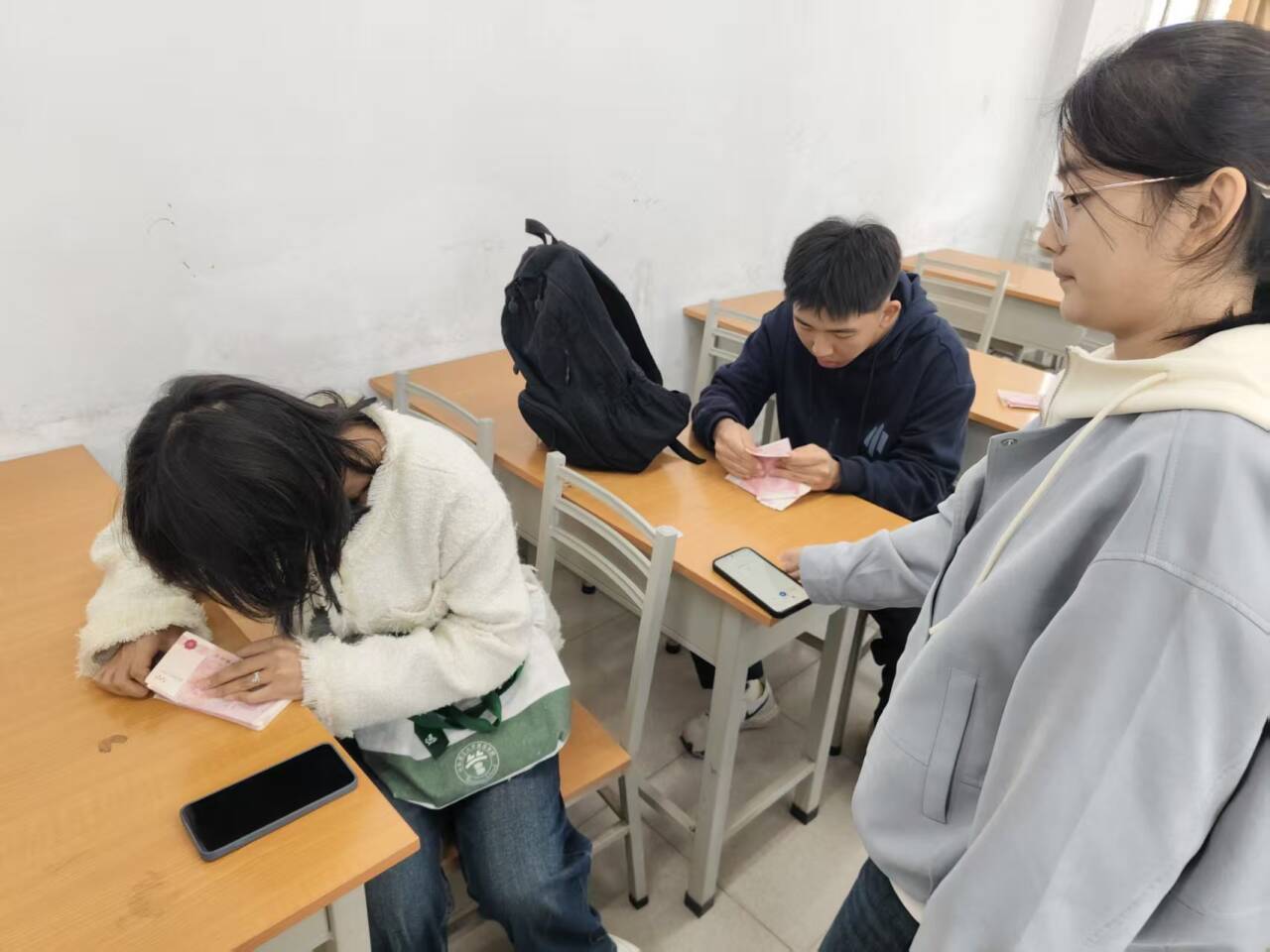 在数字经济高速发展、财务工作迈向数字化与智能化的当下,点钞这一传统财务技能仍在金融、会计、审计等领域占据核心地位,是衡量财务人员实务操作能力的关键标准。为传承财务行业严谨细致的职业精神,提升学生实操能力,会计学社于2025年10月11日,在东校区三号教学楼101教室举办“准快显真功,财途逐梦绽风采”会计点钞比赛,吸引50余名学生踊跃参与。