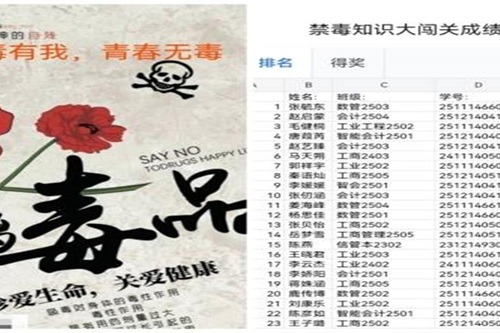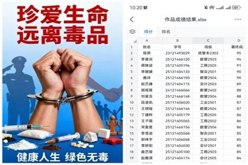 活动开展后,分为两项。第一项为“禁毒知识大闯关”线上答题环节开启,同学们在规定时间内完成试题,系统评分后志愿者将依据分数与时间进行排名。第二项为“传承禁毒精神”主题作品征集活动,参赛者将围绕“健康人生,绿色无毒”“弘扬林则徐禁毒与爱国主义精神”等主题制作作品,志愿者将对作品进行打分并排名。最后志愿者将综合两项活动的排名得出最终排名,并对获奖者发布学分。
